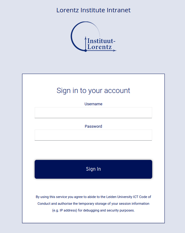 You will be redirected automatically to the Lorentz Institute Identity Provider login page as in Figure 1.