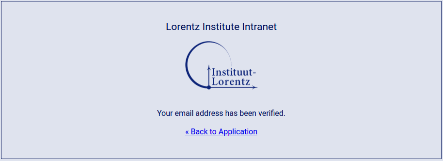 Click on Back to application to redirect your browser to the Lorentz Institute SSO web application from which you started the whole process or close the browser. Your setup is complete.