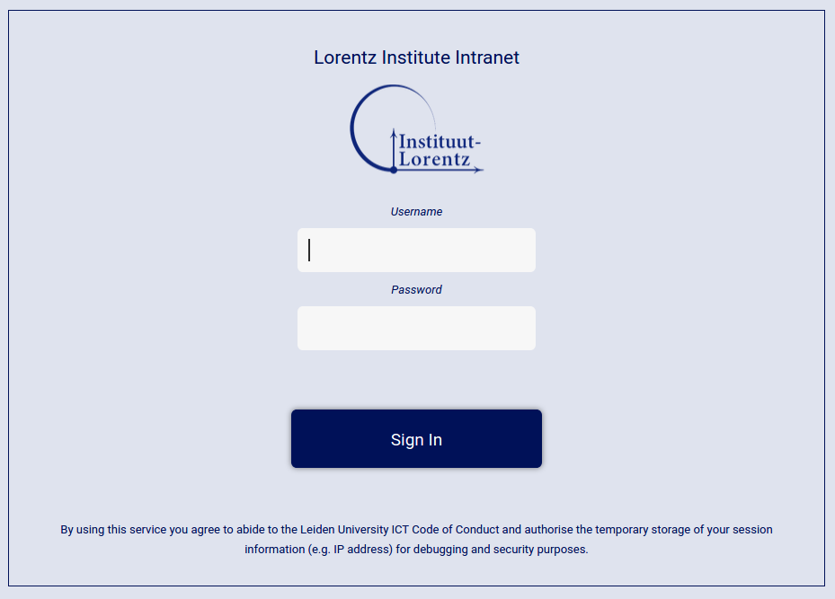 You will be redirected automatically to the Lorentz Institute Identity Provider login page as in Figure 1.