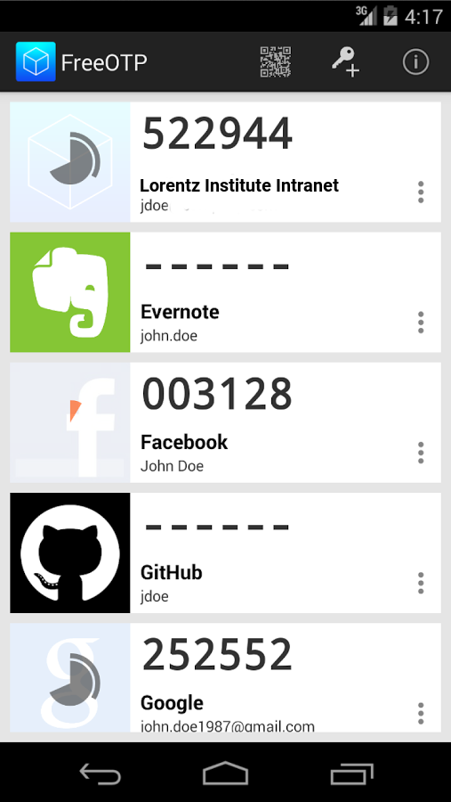 Other mobile apps known to work with our system are google authenticator and andOTP. However, any app implementing the open TOTP standard will do.