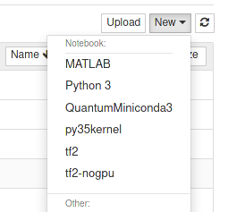 # We use maris075 (GPU node) and load the optimised tf module ml load TensorFlow/2.1.0-fosscuda-2019b-Python-3.7.4 # We install ipykernel, because necessary to run py notebooks python -m pip install ipykernel --user # We create a kernel called TFQuantum based on python from TensorFlow/2.1.0-fosscuda-2019b-Python-3.7.4 python -m ipykernel install --name TFQuantum --display-name "TFQuantum" --user # We edit the kernel such that it does not execute python directly # but via a custom wrapper script cat $HOME/.local/share/jupyter/kernels/tfquantum/kernel.json { "argv": [ "/home/lenocil/.local/share/jupyter/kernels/tfquantum/wrapper.sh", "-m", "ipykernel_launcher", "-f", "{connection_file}" ], "display_name": "TFQuantum", "language": "python", "metadata": { "debugger": true } } # The wrapper script will call python but only after loading any # appropriate module cat /home/lenocil/.local/share/jupyter/kernels/tfquantum/wrapper.sh #!/bin/env bash ml load TensorFlow/2.1.0-fosscuda-2019b-Python-3.7.4 exec python $@ # DONE. tfquantum will appear in the dropdown list of kernels # upon creating a new notebook