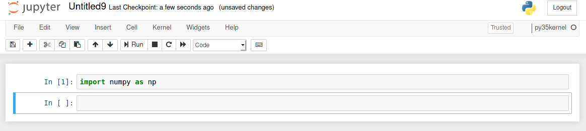Launch a jupyter notebook as described above and select the newly created py35kernel as shown in the figure below