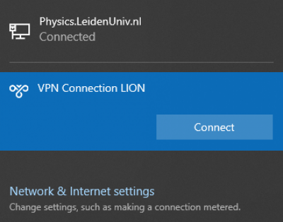 Right click the name of your: VPN Connection LION, LION-VPN, Universiteit Leiden and select Properties