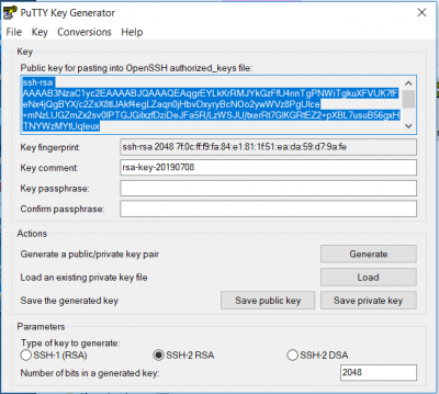 Make sure to use sensible file names for the two key files. The private key is automatically appended with the .ppk extension, while the public key does not need an extension.
